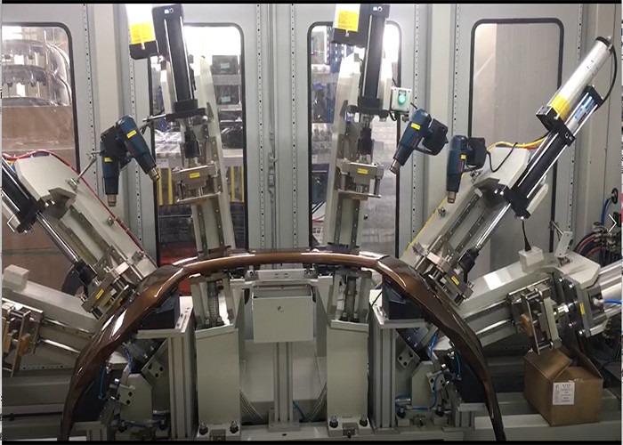 машина 2.The прикладывает ультразвуковой или холодный нож к отверстиям пунша и сваривая кронштейнам датчика ультразвуковым.